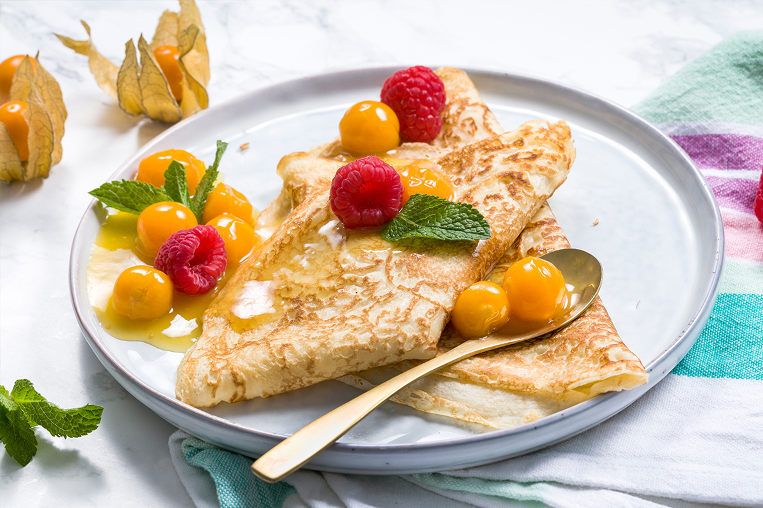 Crêpes mit Physalismarmelade gehören mit Sicherheit zu unseren liebsten, festlichen Desserts. Die Physalismarmelade verleiht den Crêpes eine süße Note. Das wird ein Genuss!