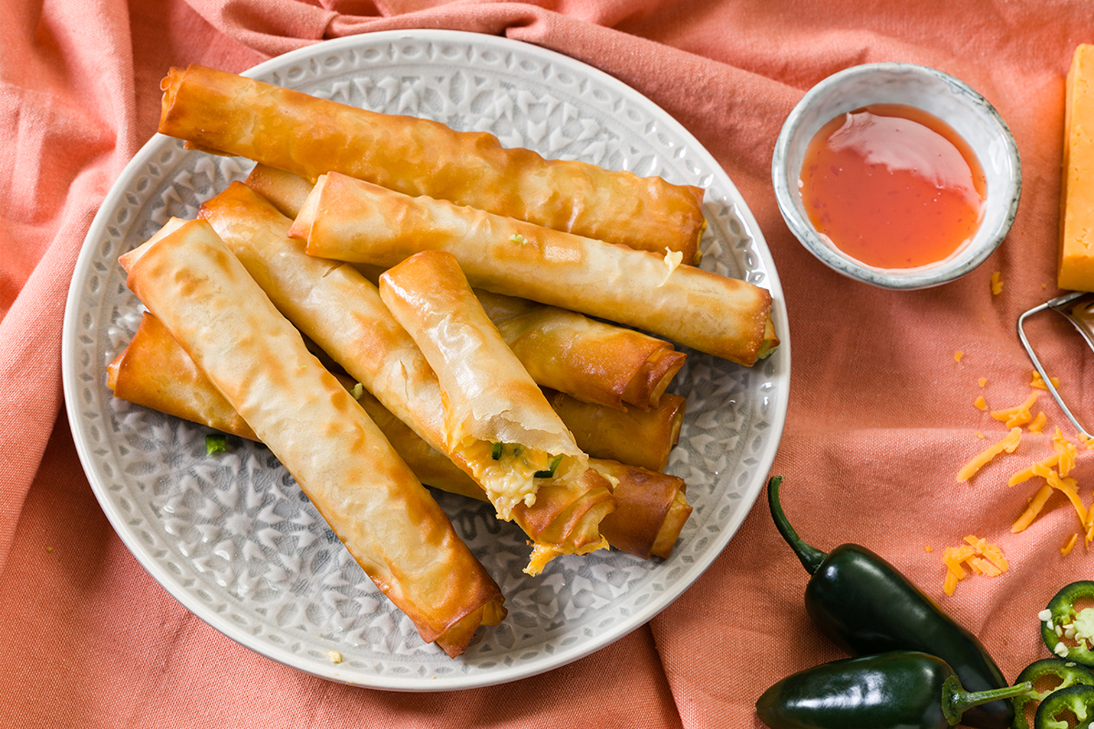 Genieße mal einen Drink mit einem würzigen Snack. In diesen Käsestangen befinden sich Stückchen Jalapeño-Chilis, die für einen angenehmen Biss und ein wenig Schärfe sorgen!