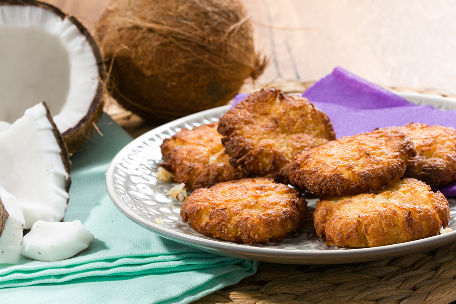 Kokosmakronen sind sehr schmackhafte Plätzchen. Außen knusprig und innen wunderbar weich. Einfach zu machen und besonders lecker mit frischem Kokosfleisch.
