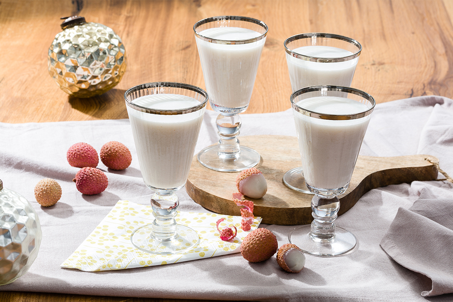 Genieße einen exotischen Cocktail mit saftigen Litschis. Die Kombination mit Kokosmilch ist sehr weich und schmackhaft. Eine schöne Kombination für einen prickelnden Abend.