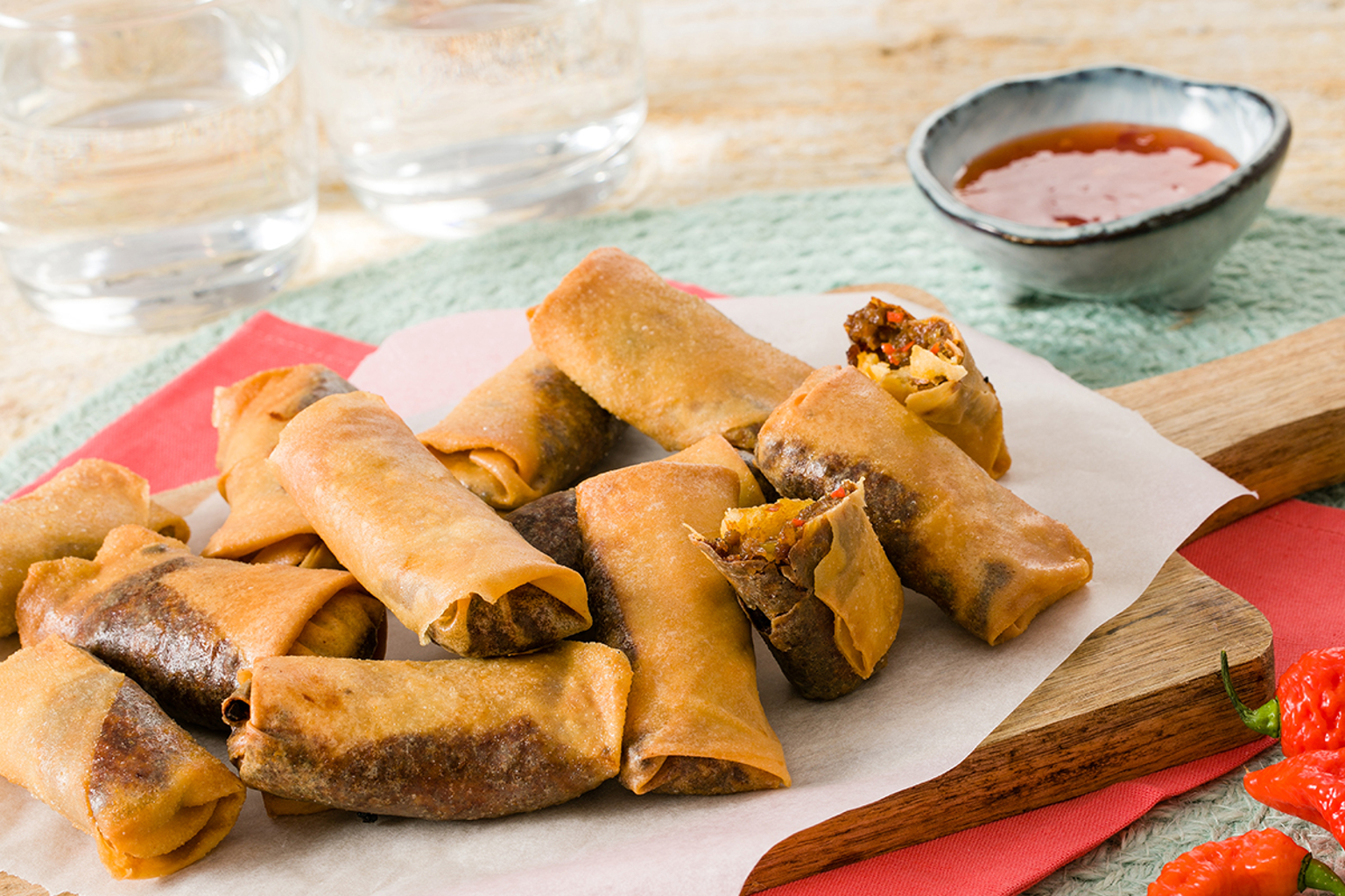 Einen Esslöffel Olivenöl in einer Bratpfanne erhitzen, und die Schalotte ca. drei Minuten bei mittlerer Hitze anschwitzen. Das Hackfleisch hinzufügen und ca. 4 Minuten braten. Currypulver, Paprikapulver, Ketjap manis, Sojasauce und Mehl hinzufügen. Weitere zwei Minuten lang anbraten. Mit Salz abschmecken.