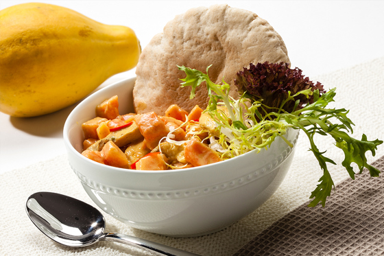 A sunny fruit salad is not the only way to use papaya in the kitchen. You can even make a spicy curry with it.
