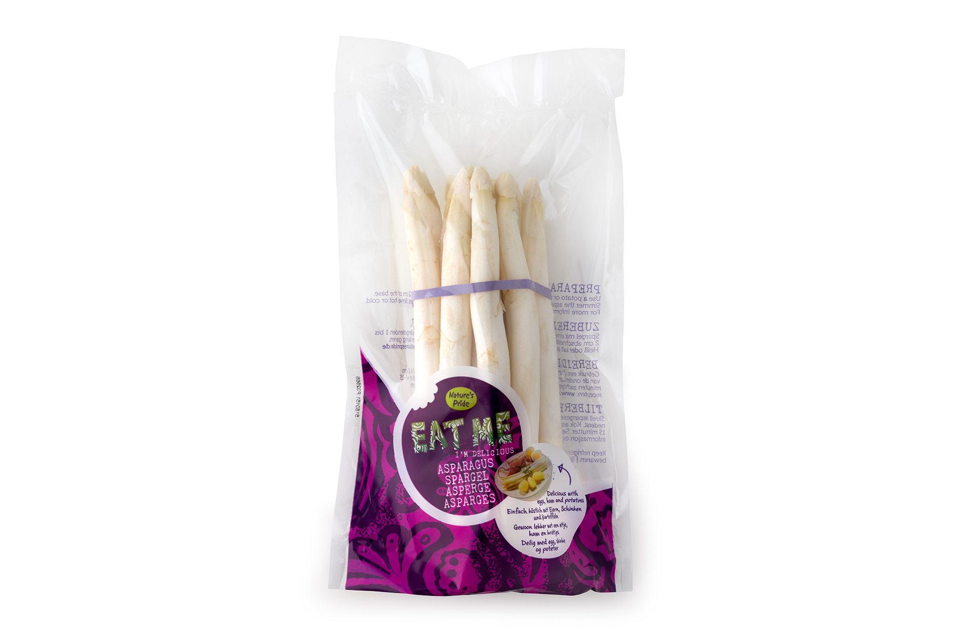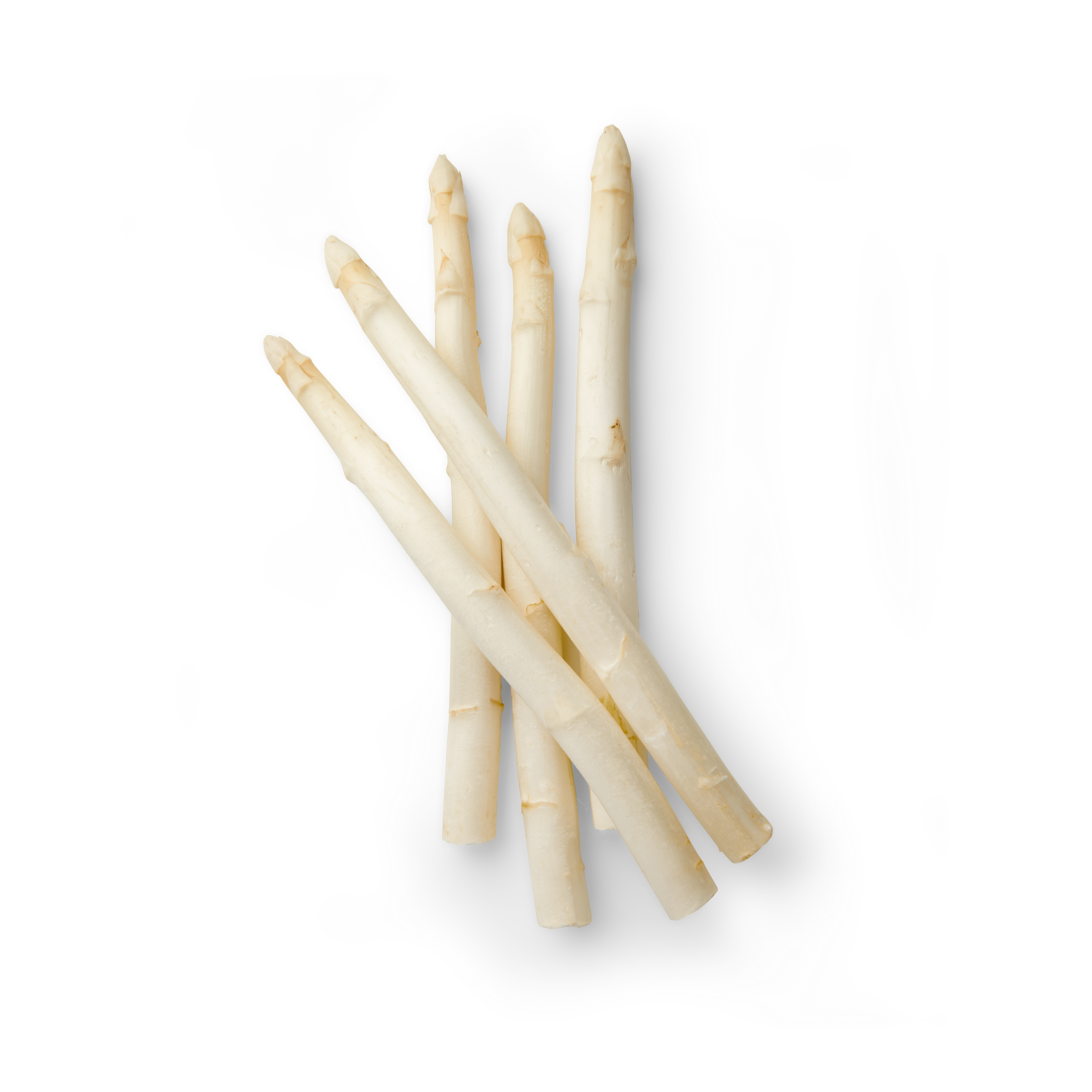 White asparagus comes from our growers in Peru. White asparagus is grown in a special way in raised beds to hide them from sunlight. This explains how they retain their lovely whiteness. As soon as the spears emerge above the soil, they turn green. That is why white asparagus are picked as soon as their tip starts to show.