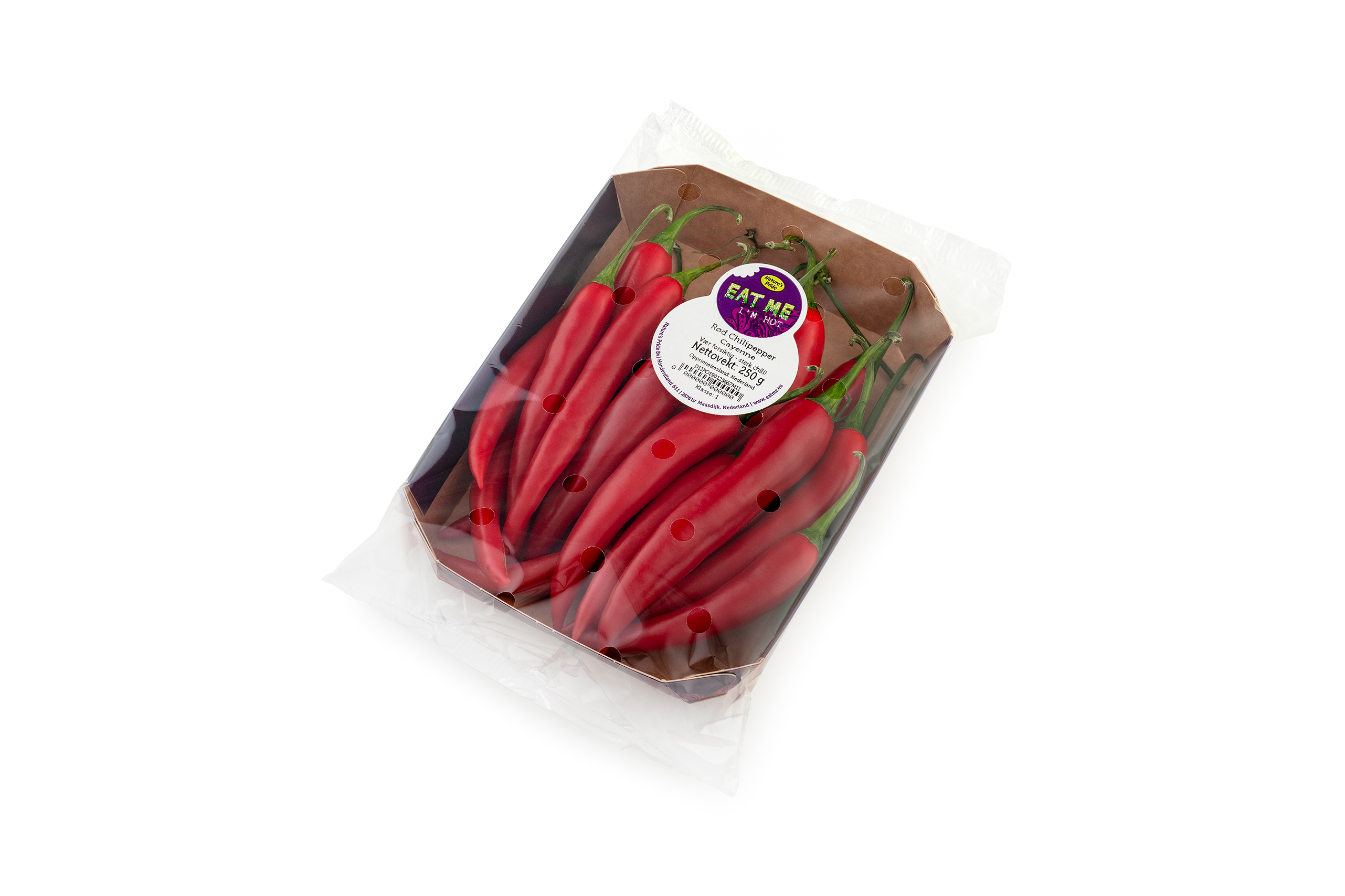EAT ME cayenne peppers are grown in countries such as the Netherlands, Spain and Morocco. In the Netherlands, the peppers are grown in greenhouses, in the countries to the south they grow outdoors in the field. The pepper plants are raised by propagators, and then transferred to pots or stone wool slabs. Cayenne peppers grow upwards on a long stem. The fruits develop on the short side shoots of the stem. They are large enough to be harvested after 6-8 weeks.