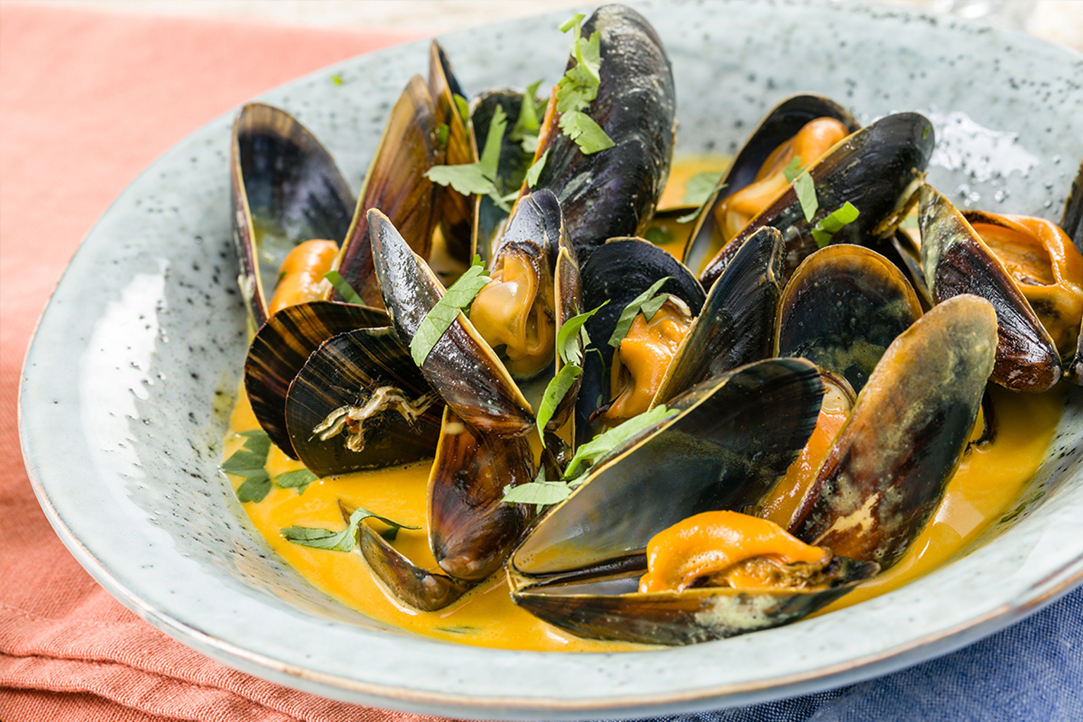 Mussels are incredibly versatile. They are often cooked in beer and wine, but you can add even more flavour when preparing mussels. This spices in this dish really deliver a power packed flavour punch!