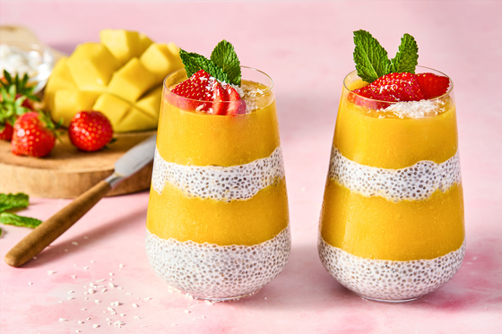 Start your day fresh and bursting with energy with this blueberry chia mousse with kiwi and dark chocolate. Make the chocolate layer as thick as you like. Light, tasty and just what you need for a good start to the day.