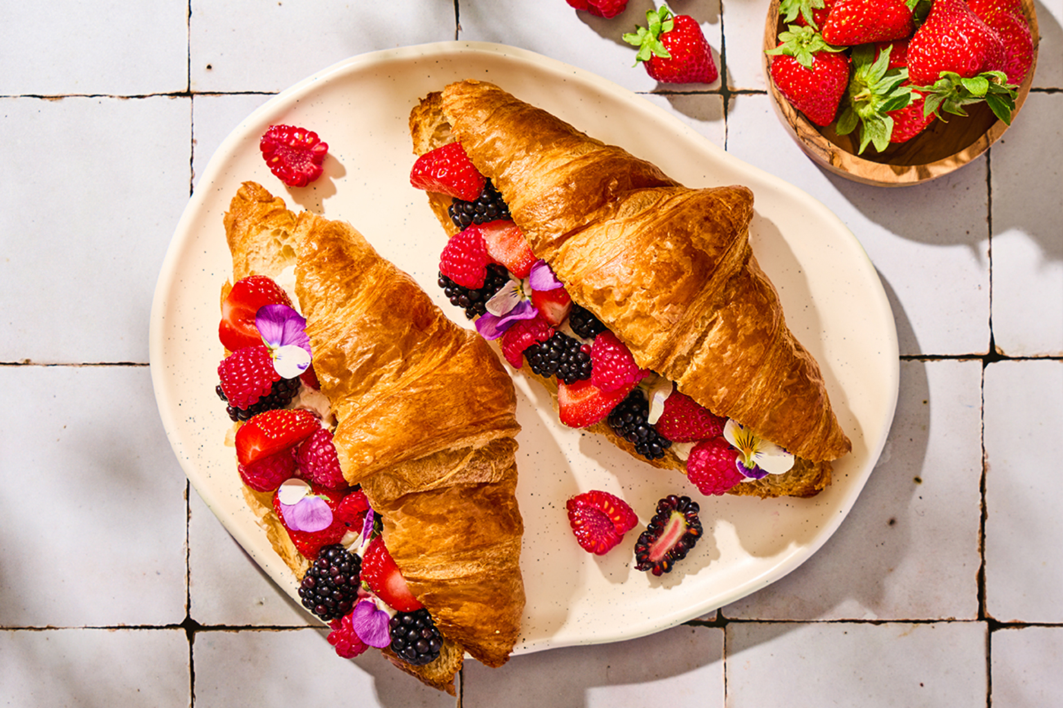 These filled croissants are an easy to prepare brunch or Easter favourite. Fill them with a smooth ricotta cream and a mix of fresh berries (strawberries, raspberries and blackberries).