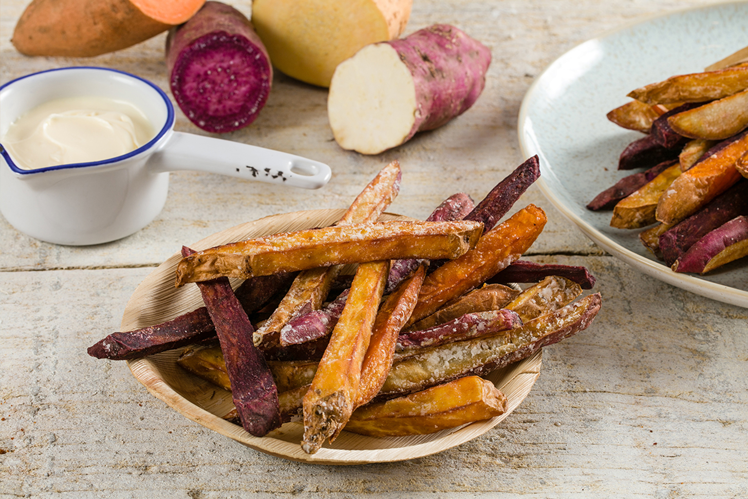 A festival of colour! Make these fries using different colours of sweet potatoes.