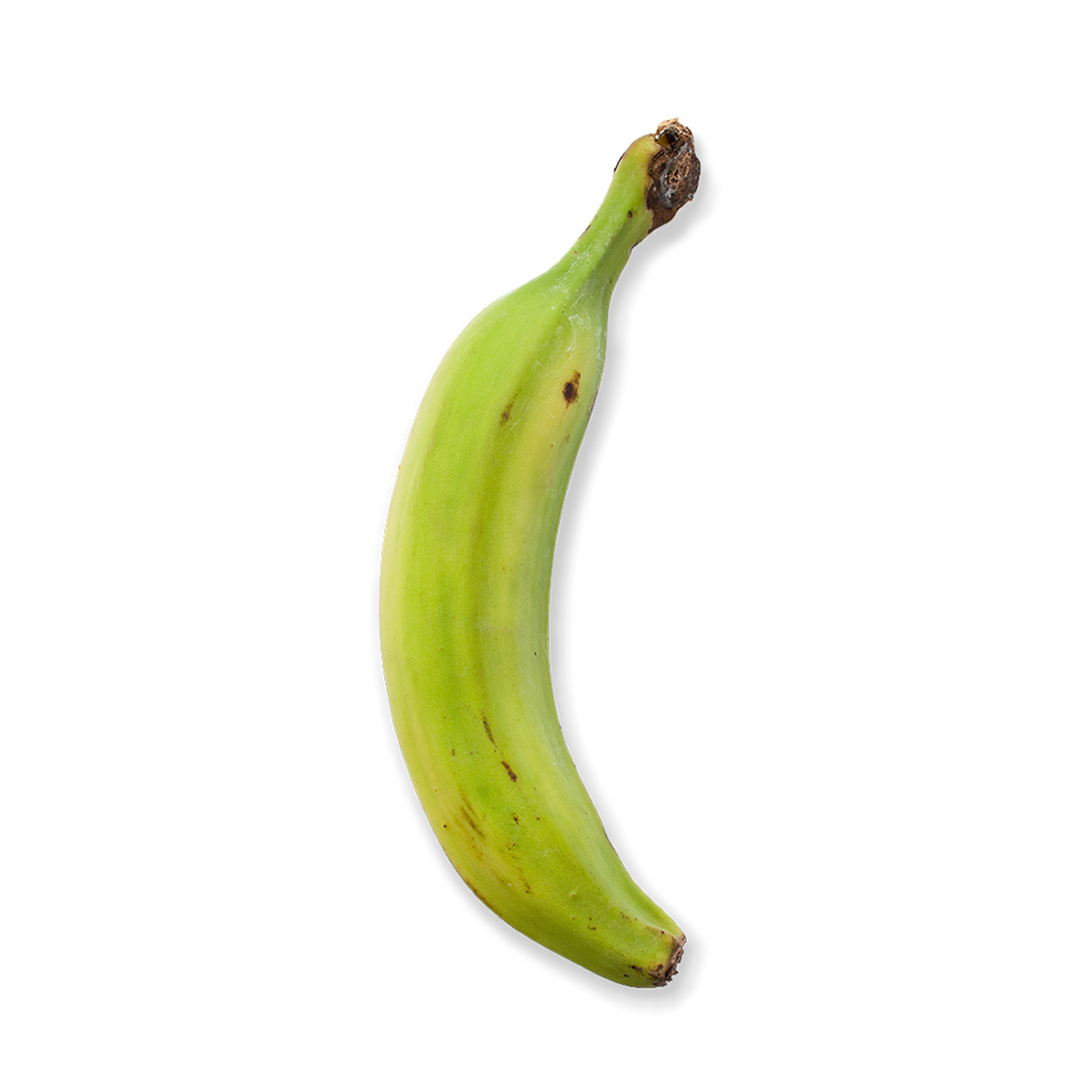 De stevige schil trek je er niet 1-2-3 af. Snijd de schil op een paar plekken in en zet dan kracht om die eraf te halen. Gele en zwarte varianten kun je met een mesje pellen. Dan is de bakbanaan klaar om in z’n geheel of in blokjes of schijfjes verder te worden verwerkt. Of bak de vrucht met schil en al, en eet de verrukkelijke binnenkant daarna uit de schil.