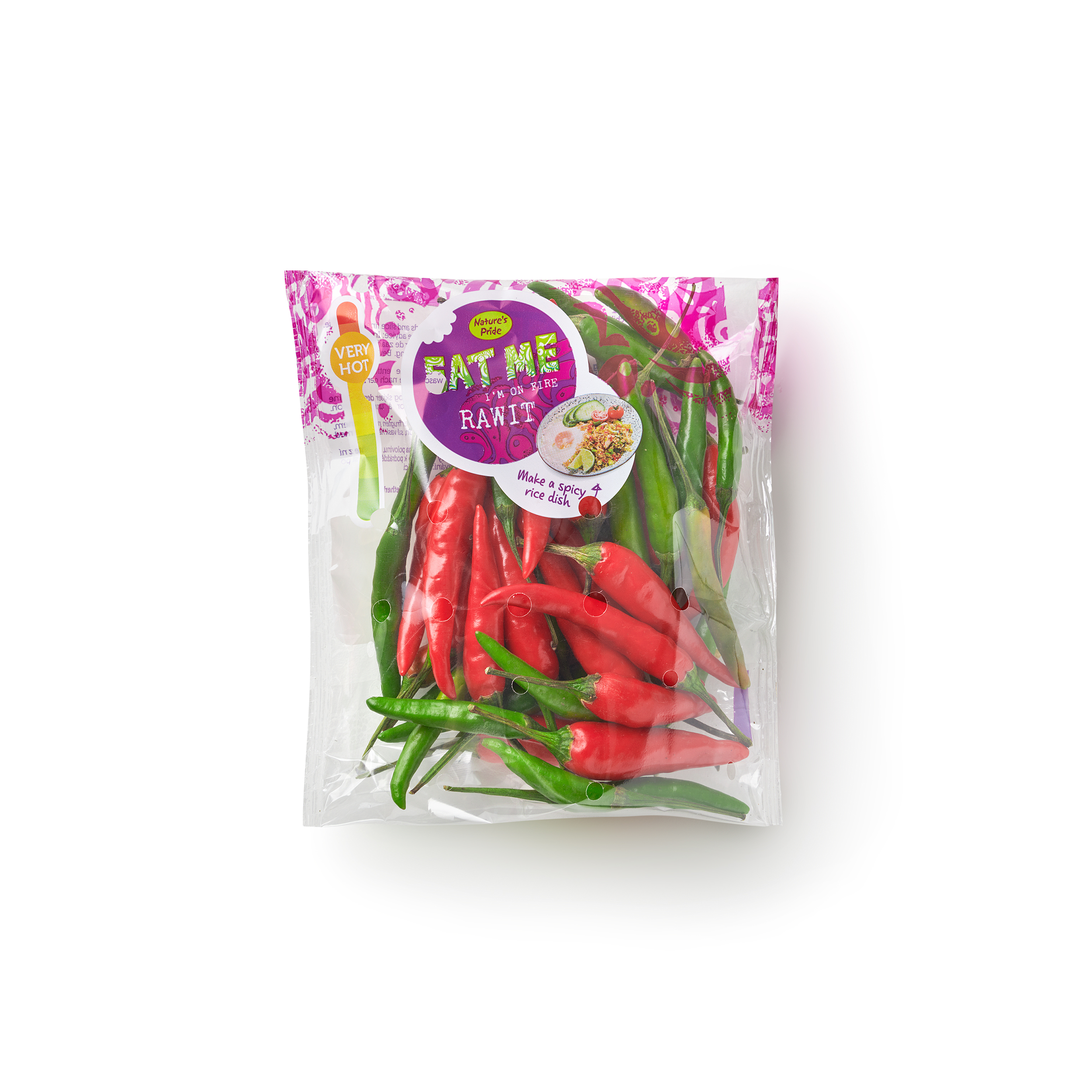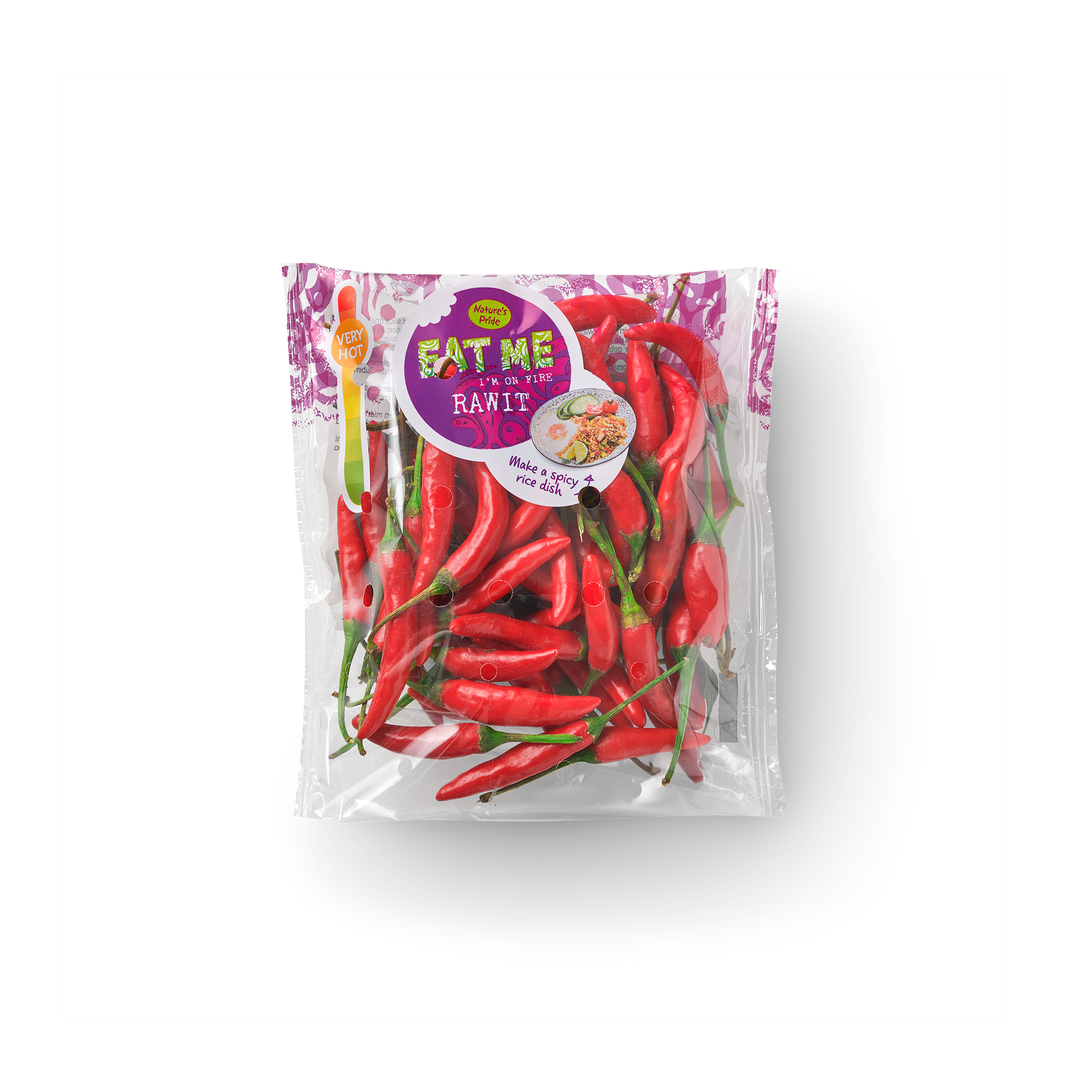 Vraag een chef-kok of een thuiskok in Thailand of Indonesië naar zijn of haar favoriete peper en de kans is groot dat je overal hetzelfde antwoord hoort: rawit. Niet verwonderlijk trouwens als je weet dat die keukens een voorkeur hebben voor nogal pittige gerechten. Daar past de EAT ME rawit peper prima in. Het is een peper die hoog scoort op de ranglijst met de meest scherpe soortgenoten ter wereld, de Scoville schaal. Bij EAT ME hanteren we een eigen methode om aan te geven hoe de smaak zich verhoudt tot andere. Op de hot scale krijgt de rawit op een schaal van 0 tot 10 maar liefst een 8.