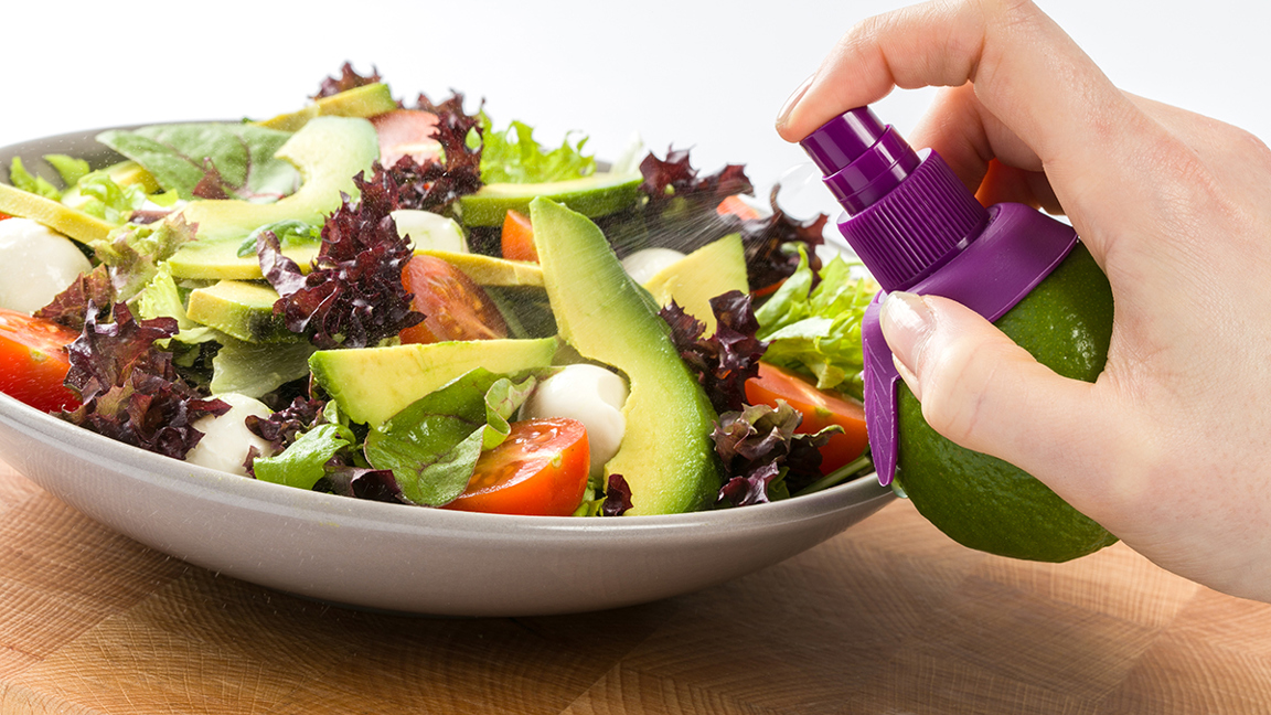 Hoe vaak vind je bij een recept niet de aanbeveling om er een paar druppeltjes limoensap aan toe te voegen? En hoe vaak vond je het ook een toestand om die limoen te halveren en er een paar druppeltjes uit te persen? Dat kan slimmer, vonden we bij EAT ME. Met een limoensprayer, een keukenaccessoire die van een limoen een sprayer maakt.