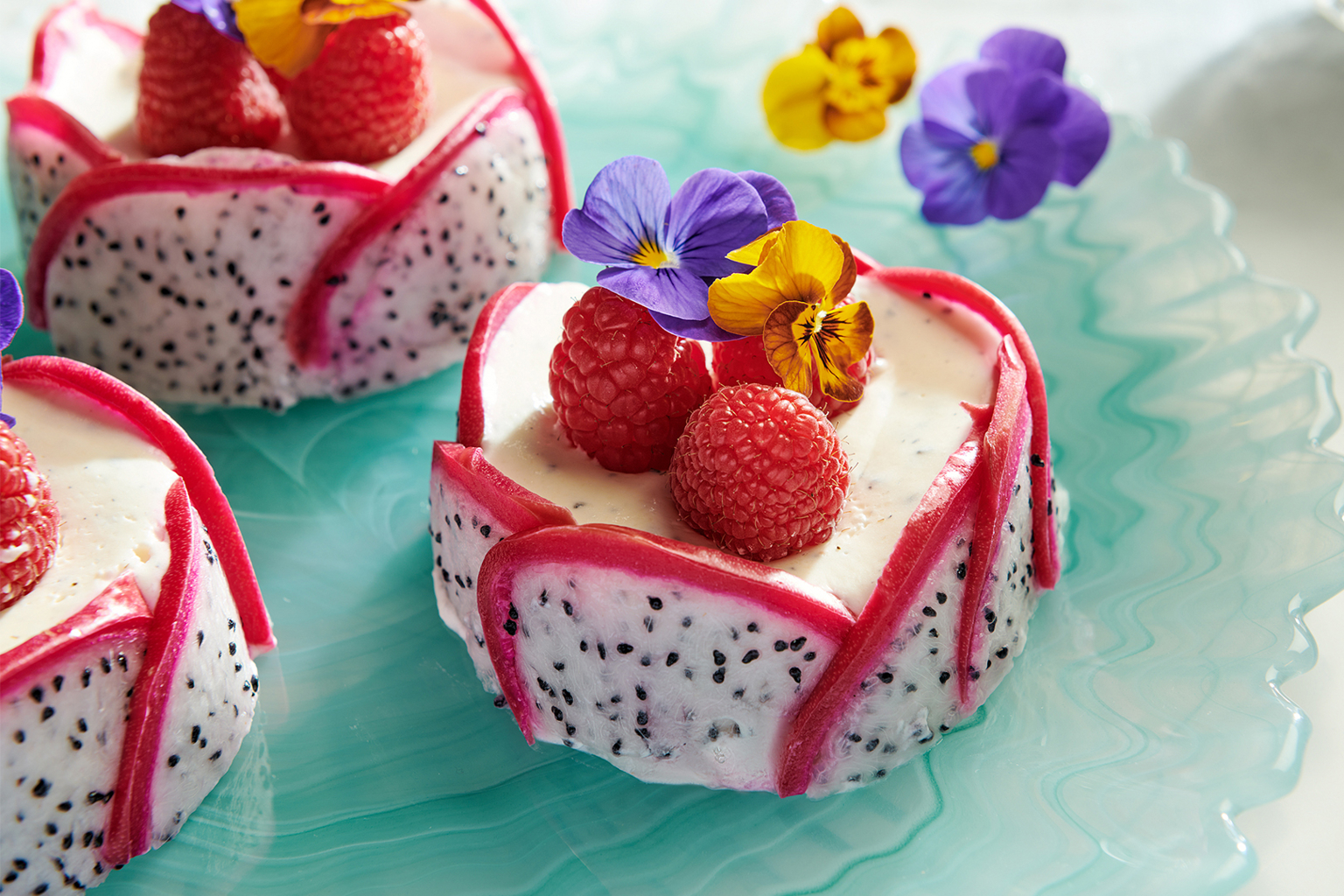 Versier deze taartjes met rozenblaadjes en je hebt het perfecte Valentijnstaartje. En wist je dat er ook rode en gele pitahaya’s zijn? Gebruik voor Valentijn dan rode pitahaya om de liefdesvreugde extra te verhogen.