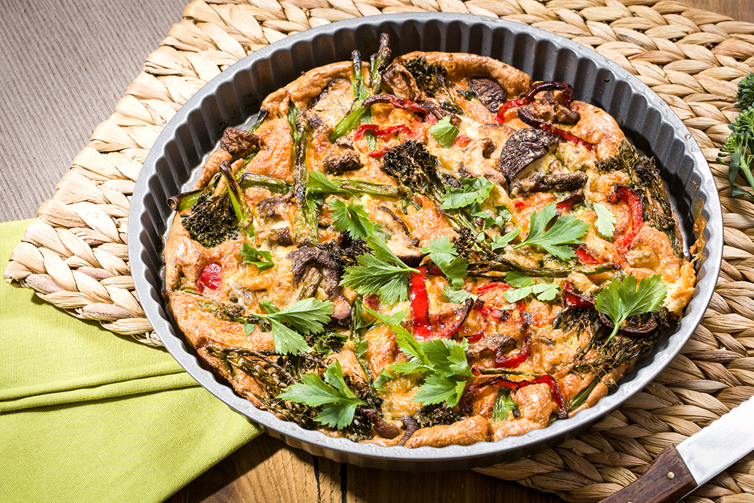 Een frittata is een Italiaanse variant op de omelet en je kunt er gemakkelijk meerdere groente aan toevoegen. Eet een grote punt met een salade als hoofdgerecht of een kleiner stukje als voorgerecht, snack of lunch.