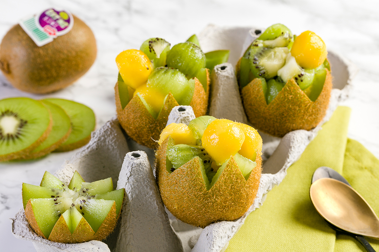Hoe leuk zijn deze kiwi eitjes gevuld met mangobolletjes. Leuk als traktatie of perfect om als fruithapje bij een paasbrunch te serveren.