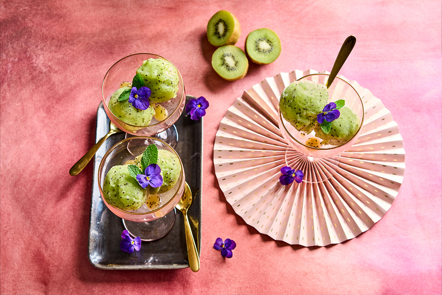 Tip: Serveer het kiwisorbetijs als spoom tijdens het kerstdiner met een flinke scheut prosecco of cava.