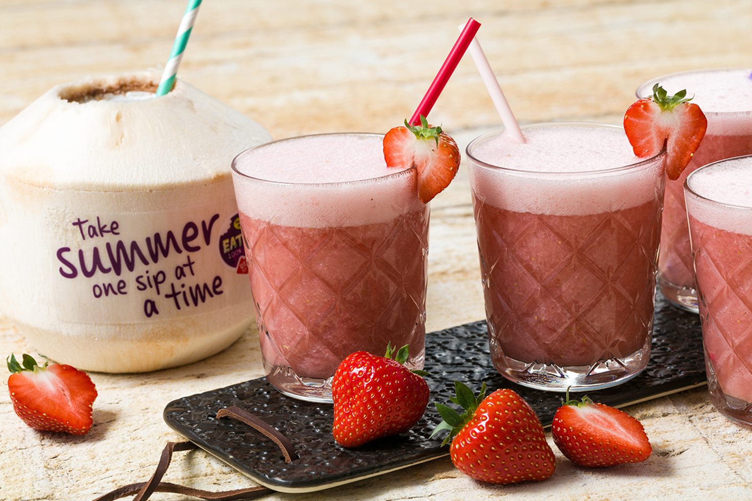 Maak een gezonde en vullende smoothie met vers kokoswater. Kokoswater hydrateert goed en past goed bij de volle smaken van banaan en aardbei. Lekker na het sporten!