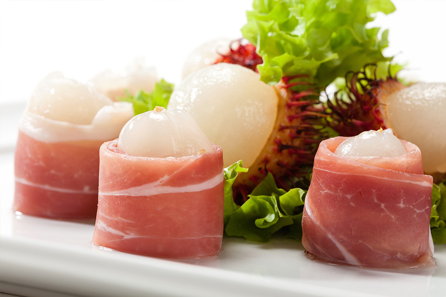 Maak een lekker en verrassend voorgerecht of gezellige hapjes die bij iedereen in de smaak zullen vallen. De zoete smaak van ramboetan combineert heerlijk met de rauwe ham.