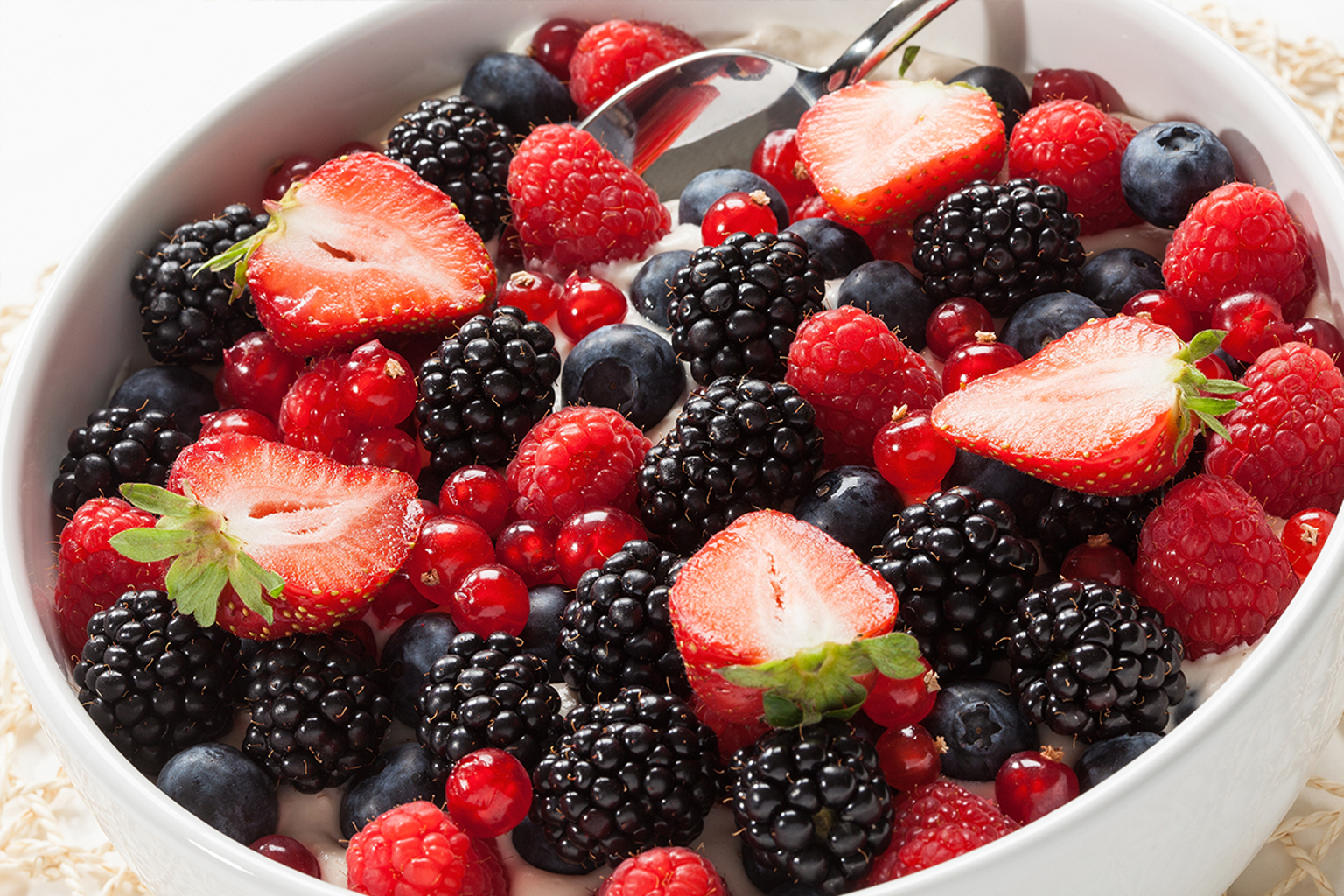 - Klop de slagroom met de basterdsuiker stijf. Spatel zo luchtig mogelijk door de kwark en verdeel over vier kommetjes. Verdeel de vruchten over de kommetjes.