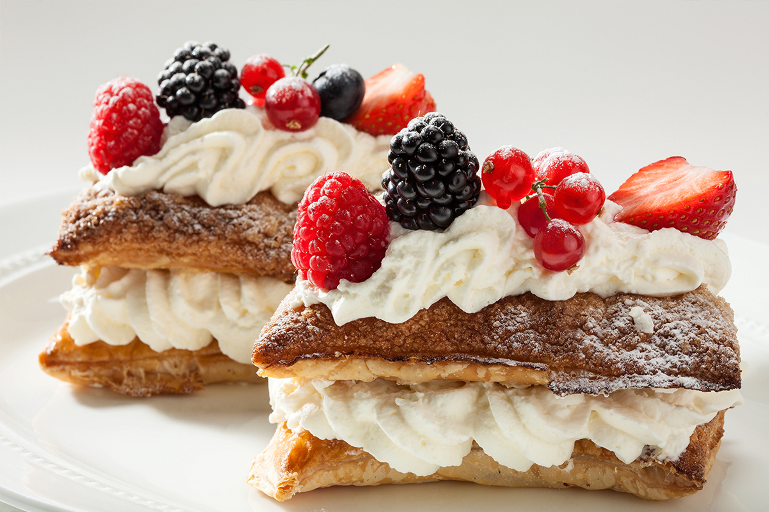 De tompouce is een heerlijke traktatie. Leuk om eens zelf aan de slag te gaan en deze romige taartjes te serveren aan vrienden of familie. Extra bijzonder met frisse rode vruchten. Ze zijn eigenlijk makkelijker om te maken dan om te eten.