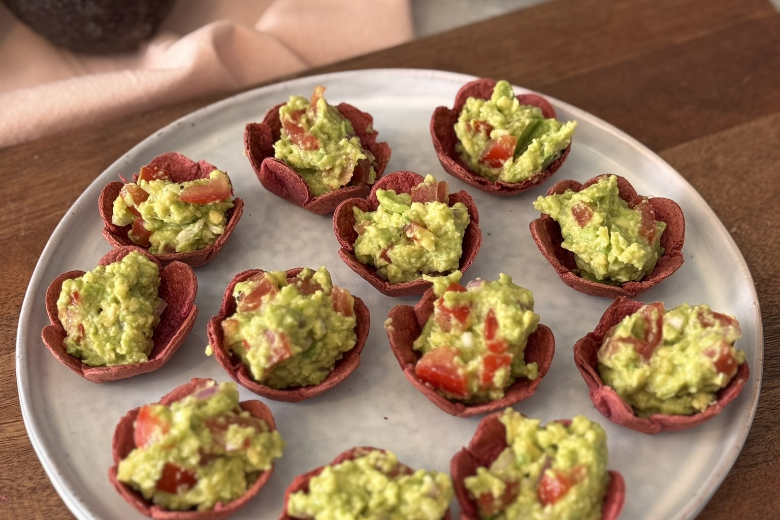 Deze kleurrijke bietenwrap-cups met romige guacamole zijn perfect voor de bij de borrel of een vrolijke paasbrunch. Supersimpel, snel klaar en een feestje om te serveren!