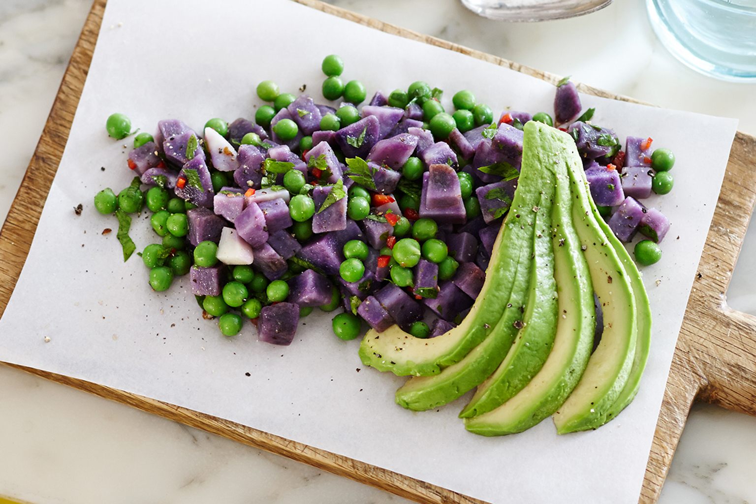 Heb je trek in een verrassende salade? Dan is deze salade met avocado, limoen, truffelaardappel en doperwten een perfecte keuze. Het bevat verschillende smaakelementen die goed bij elkaar passen. Het romige van een avocado, het frisse van een limoen en het zoete van doperwten.