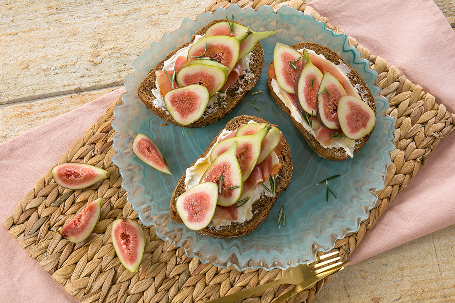 Zoek je een variatie op je reguliere boterham? Maak een feestje van je boterham door te beleggen met geitenkaas, vijgen en rauwe ham.