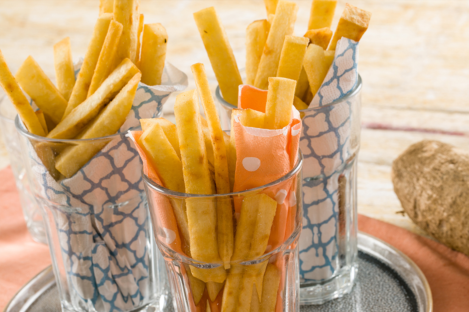 Houd je van zoete aardappelfrietjes? Probeer dan ook eens yam, het lijkt qua smaak op zoete aardappel. Bereid de frietjes in de oven voor een gezonde variant of ga 'all the way' door ze te frituren.