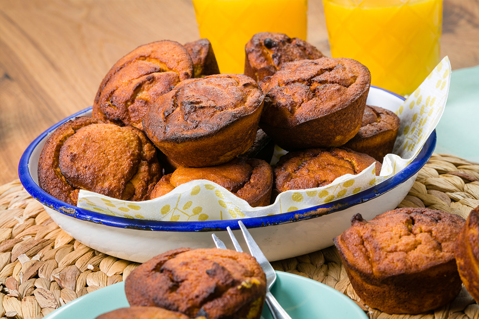 Verdeel het beslag over de holtes van de muffinbakvorm. Bak ze in het midden van de oven in ca. 25 minuten goudbruin en gaar.